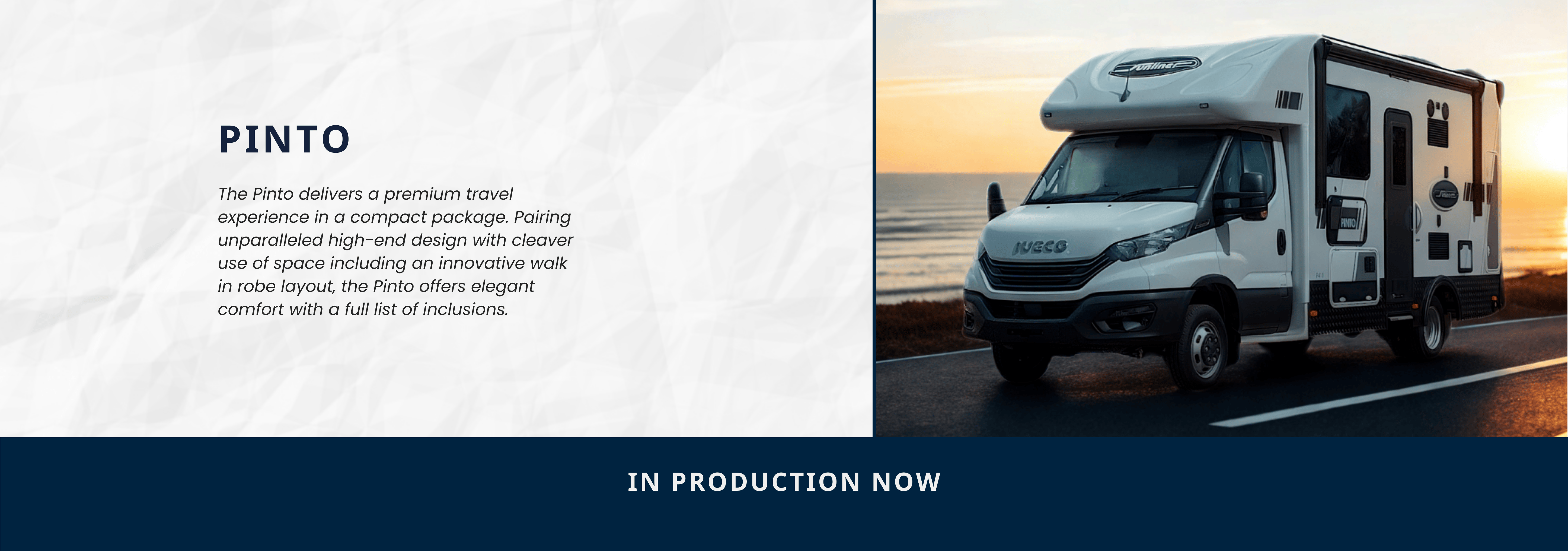 The Sunliner Pinto stands as the most luxurious motorhome of its size on the Australian market, offering premium living without the footprint of a large RV. Available in four layouts across two lengths, the Pinto showcases Sunliner’s commitment to high-end design, sophisticated styling and intelligent space utilisation.